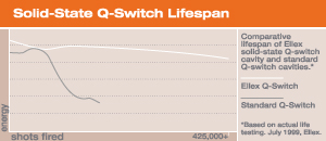 ソリッドステートのQスイッチシャッターを採用した独自のヤグレーザーキャビティーは、一般的なQスイッチと比較して劣化が少なく長寿命です。